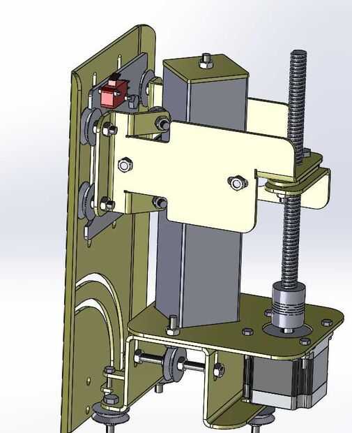 Ahora puede conectar libremente la placa del adaptador antorcha a la antorcha Levante Deslice la placa. Usted tendrá que ajustar la altura de esto más adelante. Ajustar la posición de la polea que sigue el borde derecho de la entrada de Z en las ranuras para permitir que el eje Z para moverse libremente hacia arriba y abajo el post Z pero con juego de rotación tan poco como sea posible. Una vez que el kit esté completamente montado, volver a ajustar para maximizar la rigidez de la Asamblea. Es el eje de Z completa.