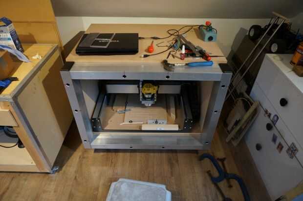 La estructura de aluminio en la parte frontal de la unidad es sin duda el más estéticamente y funcionalmente prominente característica a esta construcción y es necesario por varias razones. Proporcionará una superficie lisa y perfectamente cuadrada para montar las puertas policarbonato al recinto pero lo más importante es que permite el montaje del eje de la Shapeoko sobresalga más allá de la base de la máquina de cnc. Las dimensiones del aluminio que he utilizado eran 50 x 100 x 3 mm. Extra 100mm que se pega en la parte delantera del recinto permitido el espacio para el montaje del eje.