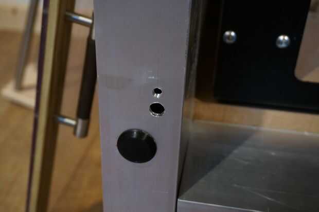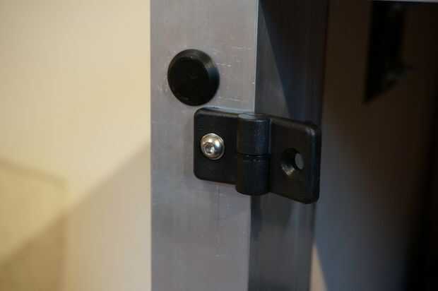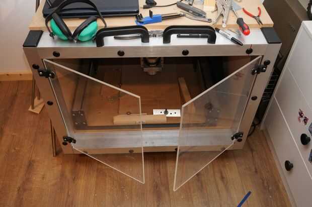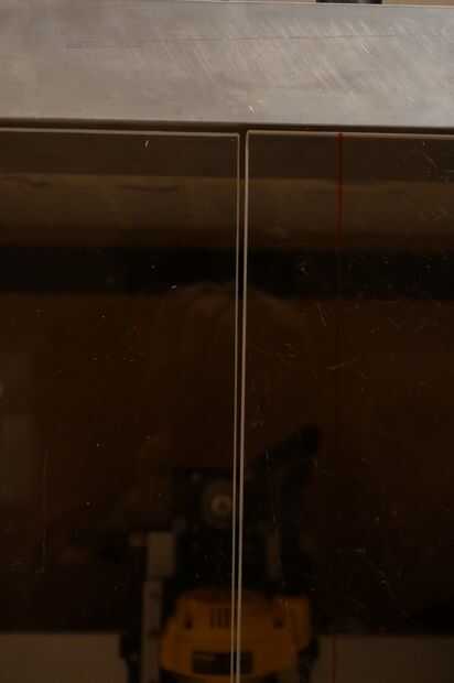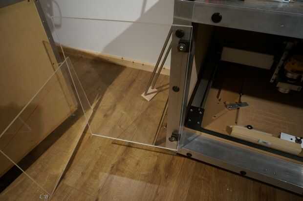 Las puertas del recinto fue sin duda el aspecto más desafiante de esta compilación para obtener derecho. Porque las puertas se establecería dentro del marco para un acabado limpio y al ras, tendrían que cortar exactamente... Tengo algún margen de maniobra que tenía la intención de dejar un espacio en la parte superior para permitir la entrada de aire para facilitar el vacío en la creación de la presión negativa dentro del recinto que yo quería. He usado policarbonato de 10mm como un taller local tenía una hoja que el no necesitaba. Este material es un plástico sorprendente, es extremadamente a prueba de golpes y se utiliza en vidrio a prueba de balas. Sin duda me protegerá de cualquier herramienta rompe o lo que ocurra dentro de la caja. Como una diversión poco prueba tomé un corte del policarbonato y tiro con uno de mis rifles de aire precargados y dejó el sedimento por lo que creo que dejará una herramienta rota desde el router!