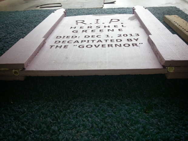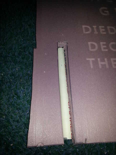 Preparar los pilares y corte una muesca para el tubo de PVC se encuentra como se muestra. Unte con cola con el PVC en su lugar y fije o poner pesos en los pilares durante la noche. Cuando seca, recorte un poco, si es necesario... no preocuparse por dañar demasiado mucho ya que la espuma procederá ahora para que se vea viejo. Puede redondear los bordes ásperos o forma deseada.
