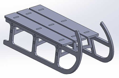 El trineo era diseño en Solidworks, y entonces el DXF de las piezas fueron exportados a Adobe Illustrator por lo que pude arreglarlos para que quepa en las hojas de madera contrachapada.