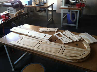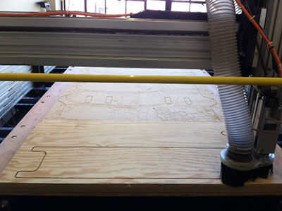 Envían las piezas en un ShopBot con un molino de extremo de 1/4". Dependiendo del tipo de router que utilizas, recuerda usar pestañas o algo presionado los pedazos más pequeños para que cuando te lo cortan, no pop suelto y dañar el molino de extremo. (Este Instructable asume que usted tiene conocimientos de cómo utilizar un router CNC ya).