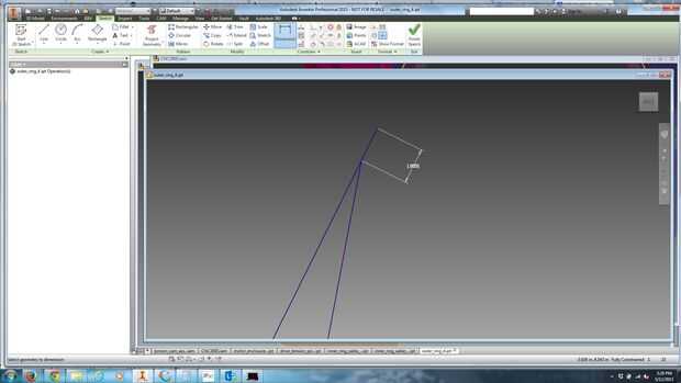 Crear un nuevo dibujo y proyecto del centro de la característica de "origen" (el agujero del alesaje en la parte inferior izquierda de mi parte como se muestra). Entonces el proyecto del centro de la característica de "referencia" (el agujero en la parte superior de mi parte como se muestra). Trace una línea para definir el eje entre estos puntos en la parte de conexión.