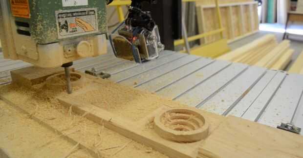 Este es el muy delantero del reloj, y se suprime mucho material. Asegúrese de que al vacío del cepillo de la pieza del proyecto entre las capas. El archivo de rutas están programadas para extremos alternos de la pieza del proyecto, toma más tiempo para tallar pero evita quemar o derretir el material eliminado por el router.