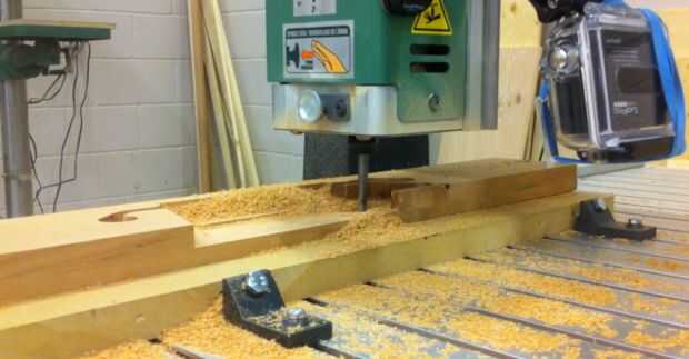 El frente de la segunda pieza del proyecto será tallado en primer lugar. Esto va tallar hacia fuera la abertura principal para el teléfono, las cavidades para el cargador cable y 3,5 mm de auriculares y los canales de amplificación de sonido sinusoidal. Asegúrese de que, el pedazo de proyecto muy bien se reprimieron como estos canales deben ser muy precisa. Este archivo se corte completamente a través de la pieza en tres pequeñas áreas.