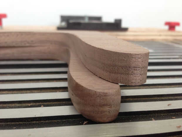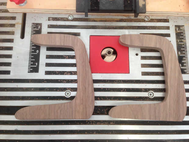 usé una mesa de la fresadora equipada con una broca para tomar el borde de las piezas de madera de 3/8" roundover. Experimenté con algunos nuez de desecho del mismo espesor hasta que encontré una profundidad que dio lugar a la misma cantidad de redondeo en ambos lados. Esto es puramente para las miradas, y no todo el mundo podría como el efecto resultante.