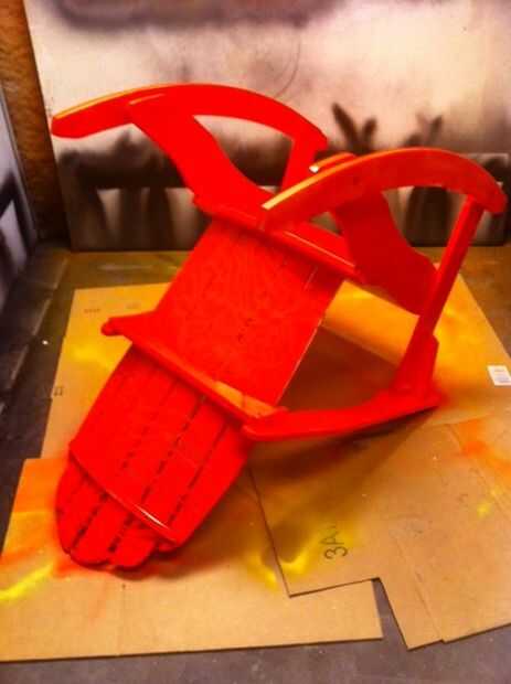 Elegir una pintura de aerosol de alta calidad con excelente cobertura hará su vida mucho más fácil. Había utilizado la cabina de aerosol de TechShop Pittsburgh, que hizo este paso mucho menos nocivo que hubiera sido lo contrario. Empecé con aerosol pintar primero la parte inferior de la silla, permitiendo tiempo suficiente para secar, luego los bancos la silla encima y pintura del frente y la parte superior. Cada una de estas sillas tomó dos latas de pintura en aerosol. La clave del éxito con pintura en aerosol es mantener cada capa bonita y delgada. He hecho 2-3 pasadas para evitar goteos.