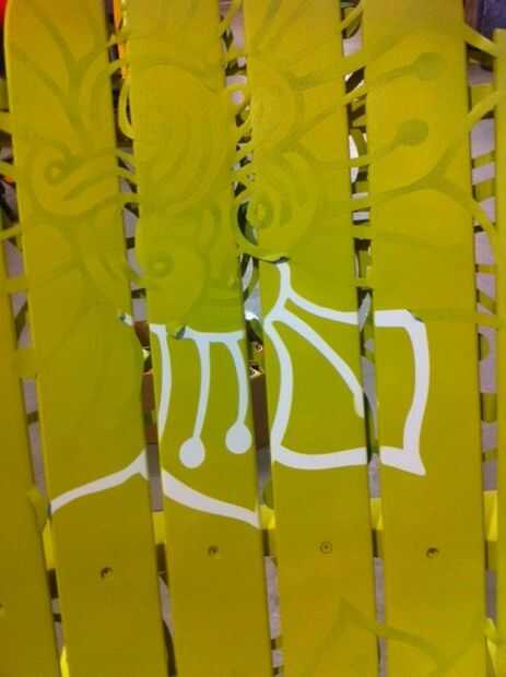 No importa qué vinilo usa, después de que la silla ha sido aerosol pintado todo su trabajo se oculta. Una vez que la silla tiene completamente seco he probado una pequeña área por peeling para el vinilo. Usé con cuidado la hoja x-acto para separar el vinilo de la silla, asegurándose de no cortar la silla o la imprimación blanca original de la viruta. El vinilo debe subir fácilmente. Este paso revela por qué tener un diseño bien conectado hará su vida más fácil en lugar de tener que pelar encima de un montón de piezas individuales separadas.
