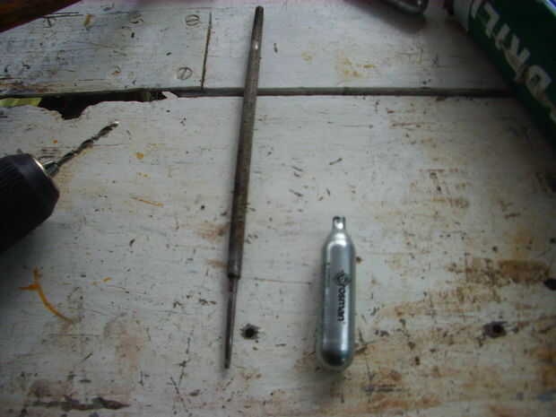 Además de un cartucho vacío de Crosman, guardar un archivo o raspador que carece de un mango. En mi caso, esto trabaja bien sin él desde su nacimiento, hace más de 25 años. Pero para ello, viene bien para hacer de conejillos de Indias.