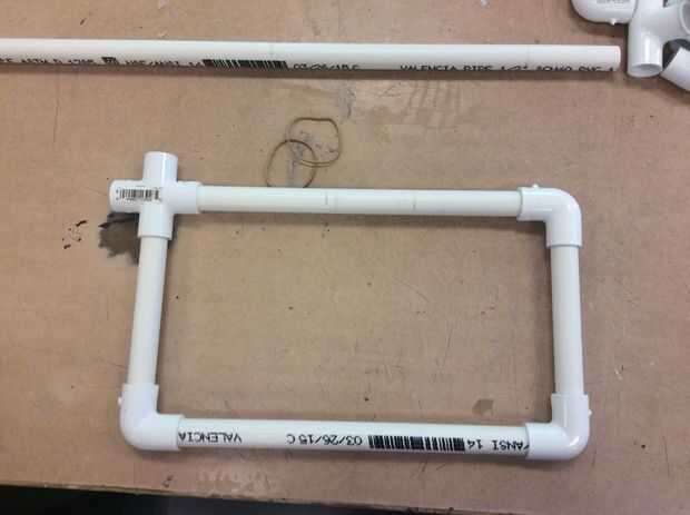 Para construir el stock es muy fácil. Simplemente corte dos 1 piezas de PVC, dos 6 pulgadas piezas de PVC y ensamblarlos como se muestra.