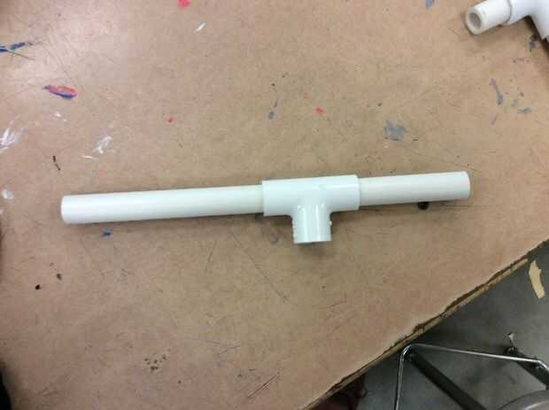 Para crear el barril fije una pieza de 5 pulgadas de PVC y un pedazo de 1 pie de PVC para una camiseta. Coloque el trípode en la parte inferior de la t y tienes el barril.