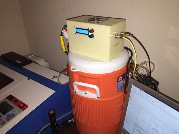Tubos de láser de CO2 se enfrían o bombeo de agua a través del tubo. Esto es necesario para prolongar la vida útil del tubo que de otra manera sobrecalentarse y perder rápidamente energía y eventualmente dejar de funcionar. Enfriadores de agua están disponibles para CO2 láser. Un enfriador de agua comerciales puede ser más caro que un cortador láser de bajo costo. Este proyecto proporciona instrucciones sobre cómo hacer un refrigerador de agua de bajo costo para un corte de láser de CO2 , si tienes un láser "K40" barato o un láser de espectro completo agradable y comercial. Demostrará la construcción del sistema de enfriador de agua completa incluyendo un termostato de Arduino basada en un acrílico láser personalizado corte caja de proyecto.