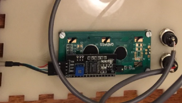 Nota: Si usted solicitar y utiliza el paquete de Arducam serie 16 x 2 LCD que pedí de Amazon primero deberá soldar la mochila para la pantalla LCD. Siga las instrucciones--o al menos la prueba para asegurarse de que la tierra en la mochila coincide con la tierra en la pantalla LCD antes de soldar es el mismo como ves en mis fotos.