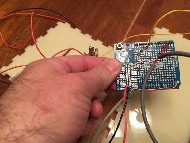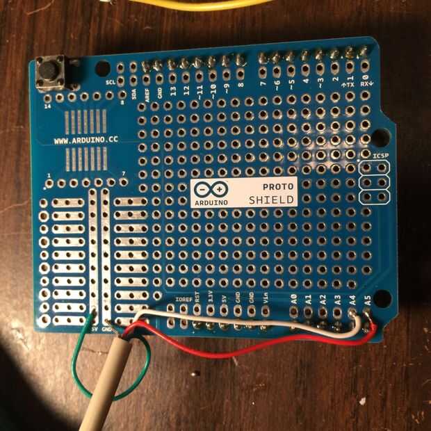 El escudo de termostato requiere varios alambres de varios paneles para unir a él. Si no te importa el tiempo y los gastos asociados con la colocación de zócalos, enchufes o cabecera pins para cables extraíbles para componentes externos, que recomiendo hacerlo. No lo hice, en gran parte porque no quiero que pedirlos y esperar a llegar. En cambio yo soldado (larga) los cables de los conectores en los paneles directamente a la pantalla, con una excepción. Me ha pasado tener un cable con un conector que encaja perfectamente la mochila de LCD. Soldar el extremo del cable sin un conector directamente al escudo (A4, A5, + 5v y GND) y luego enchufar el cable en la mochila.