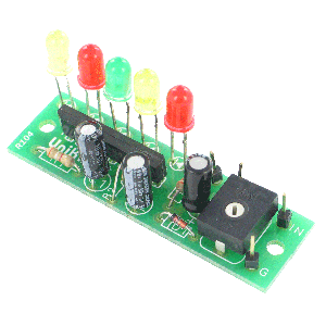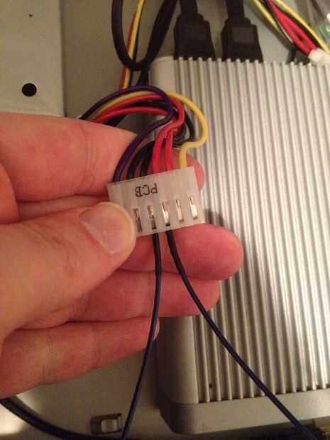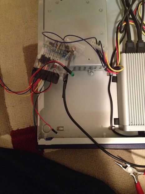 Después de soldar la mayoría de los kit de espec., puse los LEDs en los cables para que les pude conectar a la placa de plástico transparente que refracta la luz de los LEDs indicadores en el panel frontal. El circuito requiere cualquier tensión entre 5-14V, así que pegué algunos cables en el conector de la placa de la fuente de alimentación original de RaQ para extraer el riel de 5V. Entonces puse un separador en la salida de miniconector estéreo de mi Mac Mini que podría alimentar la señal de audio para el VU-metro. Materia fácil.