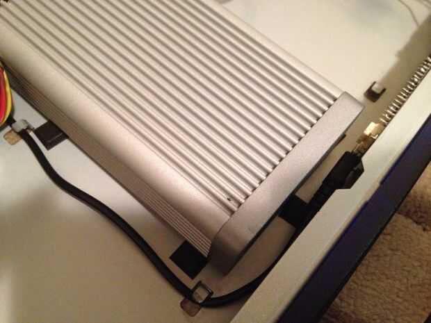 Finalmente te revelaré por qué estaba tan particular sobre la colocación de LaCie Hub. Tiene una luz azul brillante en la parte delantera que era perfecta para iluminar el logo de cobalto en la parte frontal de la caja. Usé unos pies de goma con pegamento en el interior de la caja para mantener el eje donde lo necesitaba, sin alterar el eje o permanentemente la adhesión al chasis.