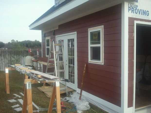 Hardie es revestimiento de cemento que cuelgan con tornillos y viene en diferentes colores. Las tablas fueron cortadas con una cuchilla de diamante y mi sierra circular. Hardie placas entonces fueron sujetados a cada montante como vas en la pared que se hizo fácil debido a los pernos prisioneros ser marcados hacia fuera en el vapor bearier. Se colocó una franja inicial de aproximadamente una pulgada en el borde inferior para asegurar que la placa se coloca en un ángulo. Utilicé tornillos de mampostería que son más fuertes que los tornillos normales y pueden perforar a través de las juntas de cemento y en los postes de madera. Compré algunos remaches usados de Geico que ayudan a mantener la Junta Hardie en su lugar. Esto era importante porque estaba trabajando por mi mismo haciendo el revestimiento y los titulares de Geico me dejan poner 12 pies longboard rápida y fácilmente. También coloqué el fondo guarnecido y esquina adornos para mi los bordes de la Junta de Hardie. Ajuste fue pintado blanco brillante primero y después la Junta de Hardie. Tapa de ajuste fue colocado después de último tablero de Hardie fue colocado en la pared y recortar un empalme de regazo en la moldura para saliente sobre el tablero de Hardie ocultar los tornillos. Una máscara de seguridad fue usada por el polvo que viene cuando se corte la madera. Guantes son opcionales para mí como soy uso para construcción de trabajo sin guantes. Gafas balísticas militares son lo que uso para lentes de seguridad y también utilizo mi balística tapones para el ruido de la sierra. Mi taladro inalámbrico de 18 voltios fue lo suficientemente fuerte como para poner los tornillos en la Junta Directiva de Hardie y espárragos.