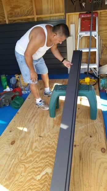 El revestimiento de pisos de vinilo y revestimiento Proslat llegaron antes de que lo necesitaba que era grande. Una vez que llegó el momento de colocarlo, sólo tomó un día para el suelo de vinilo bajar y dos días para el Proslat. Proslat vino en colores gris y blanco para hacer el interior se vea diferente. Ambos productos son excelentes y deben durar mucho tiempo. Proslat y el revestimiento de pisos de vinilo pueden adquirirse sin embargo Home Depot en línea. Ambos son un poco caros pero a la larga te ahorrarán dinero. Proslat es lo que ves en almacenes especialmente tiendas de deportes y ropa de tiendas que utilizan a los elementos allí presentes a los clientes. Ambos son fáciles de limpiar y mantener y 75 libras de peso por pie cuadrado. Proslat consigue montar cada poste como se obtienen en la pared que es lo que hace fuerte y por qué puede sostener mucho peso. Sierra para metales y metal corte de los esquileos el material del PVC como la mantequilla si es necesario cortar el largo.