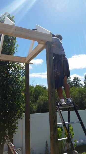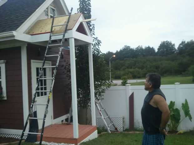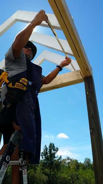 Al construir el marco aseguraron los cinco de las cerchas del techo fueron uniformemente espaciados y alineados. Pintados todos los tornillos y se llena con masilla de madera y a cubrir los defectos de la madera. El marco fue pintado blanco brillante y el interior de la madera fue pintada de rojo. Cuando se obtiene una mezcla de buen color.