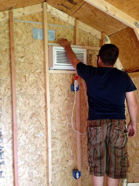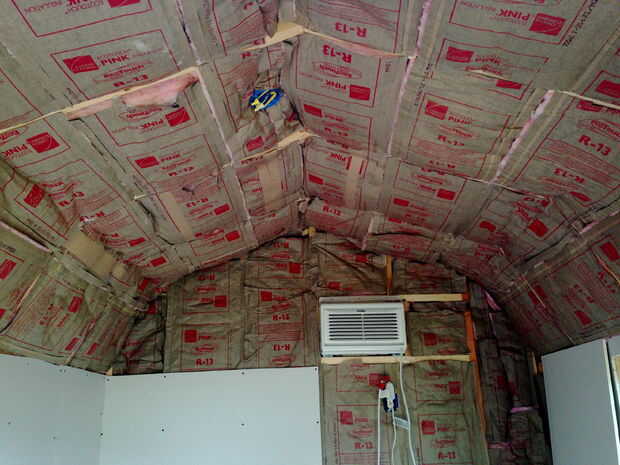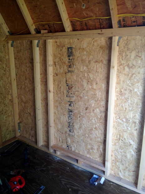 Puesto que vivimos en la Florida, la unidad de AC era una necesidad. Para ahorrar en coste de energía I aislamiento en el cobertizo, empujones de aislamiento en cada solo punto que pude. Esta fue la única parte del proceso que (como era de esperar) nadie quiso ayudar, pero aún así era más rápido y espera que el trabajo sea más fácil que yo.