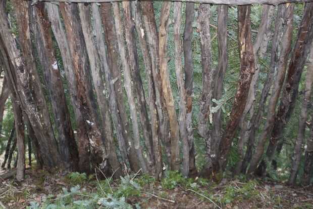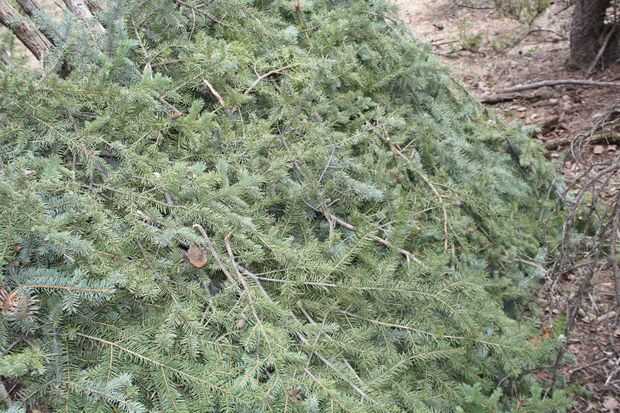 Una vez que usted tiene todo el "techo" y lado (si desea añadir postes laterales) polos en su lugar es el momento de cubrirlas para que usted y su equipo de permanecen secos. Utilizamos ramas de pino verde para cubrir nuestro lean-to pero se puede utilizar hierba, hojas, agujas de pino, una lona, poncho o cualquier otro material que proporcione aislamiento y proffing del tiempo.