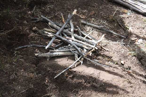 Una vez el foso cavado y su reflector construido, recoger su paquete de Yesca, leña y leña. Una buena regla del pulgar cuando se trata de leña es recoger lo que piensa que se necesita y luego doble o triple. No quiero ser el revolver sobre en medio de la noche consiguiendo más leña porque no obtener suficiente para comenzar con, lo he probado y no es realmente tan divertido.