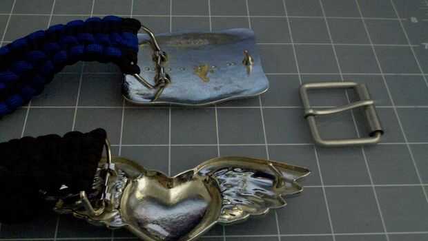 Las hebillas del cinturón pueden ser tan costosas como la luna, o usted puede hacer lo que hago y comprar una correa de buena voluntad. Gastan un promedio de $3.00 en una correa, cortar la hebilla libre y deshacerse de la banda. El tipo de paso solo lengua y las hebillas planas grandes con la punta por debajo del trabajo. Si utilizas el plano uno con la punta, sin embargo, necesitará tener un diente largo. Mi esposo tiene muchos problemas para mantener su sujetado porque el diente es demasiado corto.