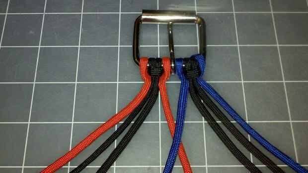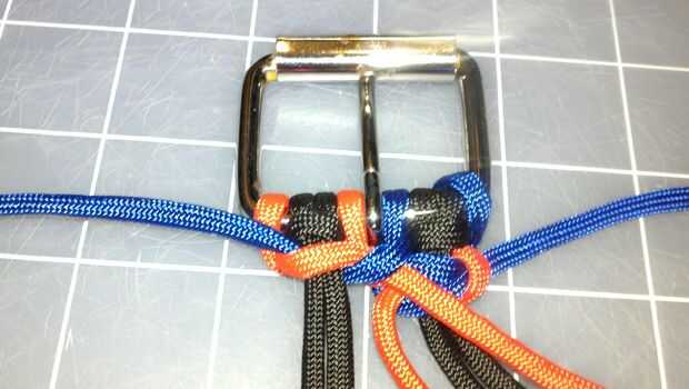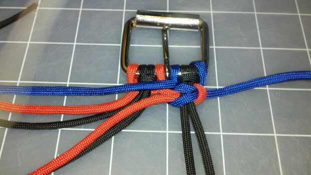 Repita haciendo nudos cuadrado hasta llegar a tres pulgadas menos que la longitud deseada de la correa.