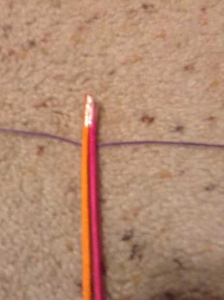 Veces te encerado secuencia en medio y detrás el paracord como en la imagen #1. Luego tomar la hebra derecha y y poner debajo el paracord y sobre la hebra izquierda como en la imagen #2. Yo sé que tu forma de pensar, ¿qué hacer con la hebra izquierda? Puede tomarlo y ponerlo en el bucle de la hebra derecha como en la imagen #3. Tire firmemente y es el tejido básico. Eso es todo lo que haces para este tutorial.