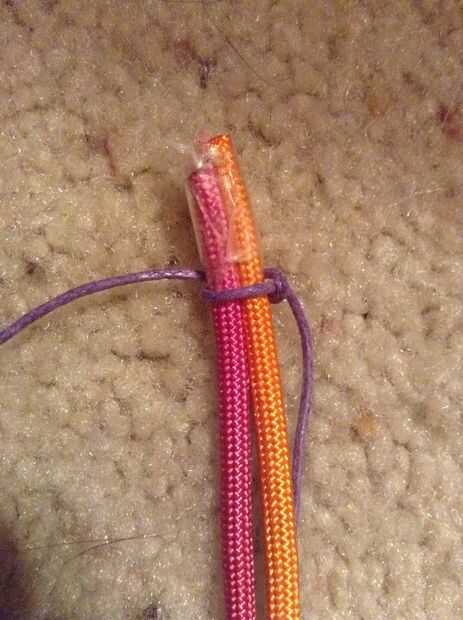 Paso 1: fuentes de Necesita 2 paracords de color de su elección y una hebillaPaso 2: Después elige los 2 colores que mina corte a 5 pies para una longitud seguraPaso 3: Agarrar uno de los colores y tire de la base (el interior filamentos) de paracord