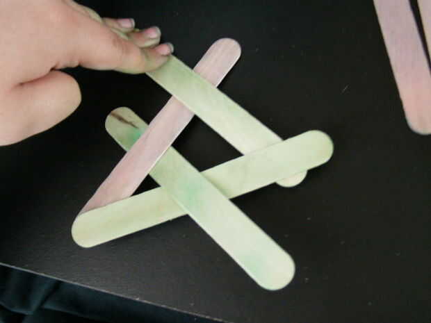 Agregar otro palo lo metiendo es debajo de palo 2 y dejar el resto ponen sobre palillo 3.