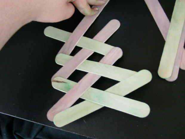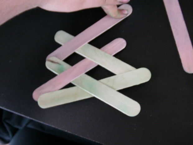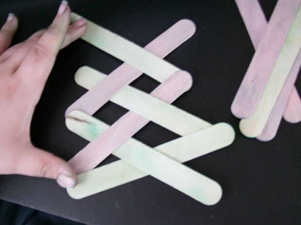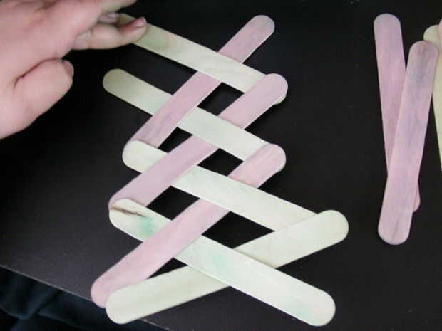 Seguir añadiendo palos, metiendo el extremo bajo el palo de color opuesto y permitiendo que el resto vaya sobre el palillo del otro hasta que hayas alcanzado la longitud deseada. Recuerde que pagará patiece y cuanto más la bomba de palo haces la explosión más show que vas a tener.