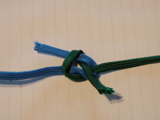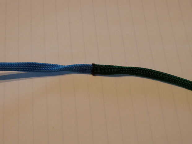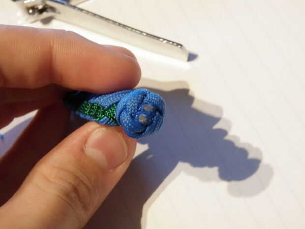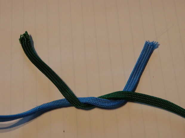 -Atar los dos colores juntos usando un nudo cuadrado o se funden los