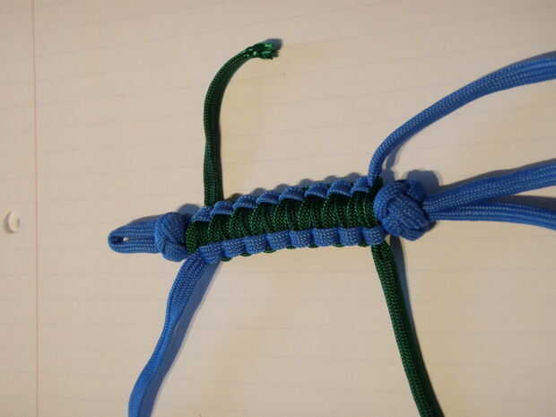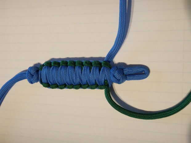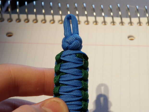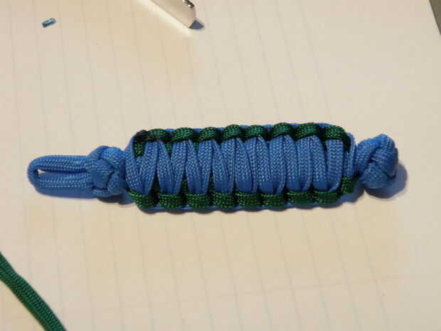 -Recientemente vi el collar de supervivencia Paracord en que hay un pedernal dentro de la armadura de cobra. Esa idea se puede incluir fácilmente en esto también. Sólo Coloque su acero de pedernal entre los nudos de la dos cuerda y continuar como si no fuera allí. Si haces una llave más larga con el acero de pedernal fácilmente puede ser considerado un Fob de clave de la supervivencia.