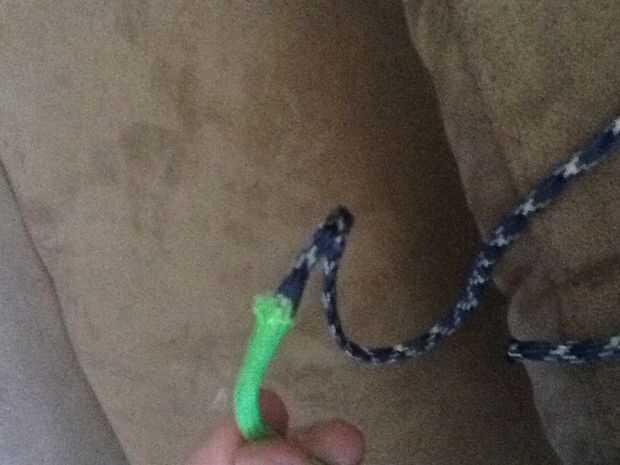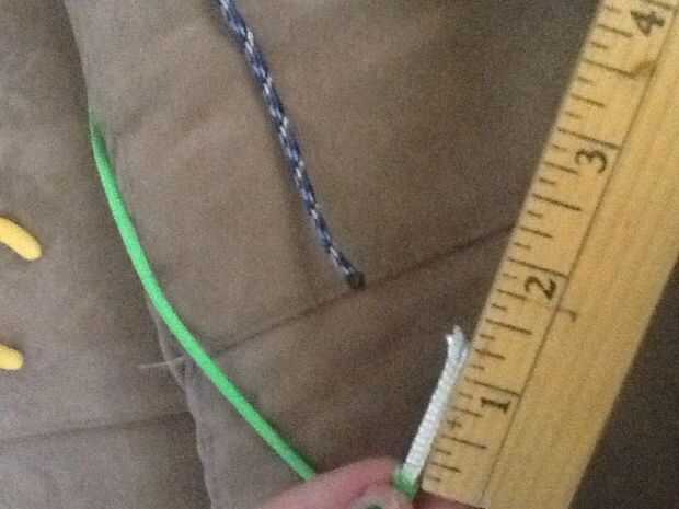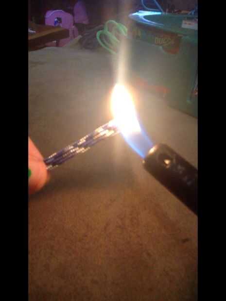Tomar una de las 17" cadenas de paracord y derretir solamente un extremo. En la otra cadena, fundir ambos extremos y en uno de los extremos, utilice su inmediatamente después de alicates fusión (endurece rápido) para hacer el extremo pequeño. Si te equivocas, solo fundirlo otra vez. Ahora, toma alrededor de una pulgada de las picaduras del interiores blanco fuera el final que no funden y cortarlas. Luego, agarra la cadena para el fin de que se haya derretido y trabajo su camino hasta el otro extremo para tirar el resto de las secuencias blanco de nuevo en la cadena. Inserte el extremo pequeño de la otra picadura en la cuerda y la conexión del derretimiento. ** Nota: Si la cuerda está deshilachada a donde cae la otra cadena, recortar la parte deshilachada Speaker *