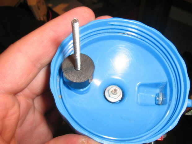 El peso desequilibrado es un cilindro de un revólver de juguete con un tornillo con un perno grande en un lado. Será en uno del mitad robot. En la otra mitad, será la caja de baterías.