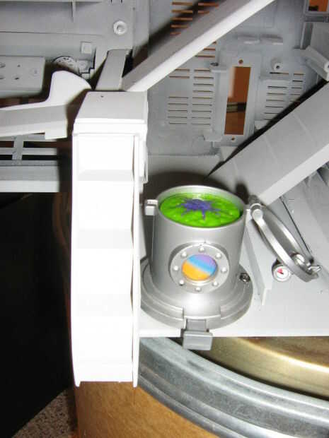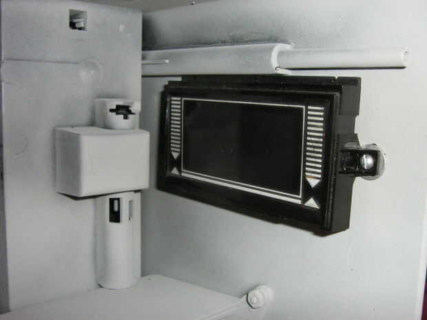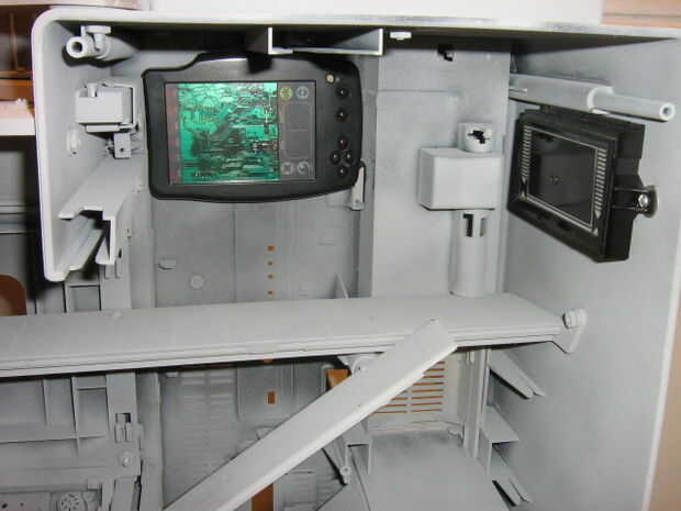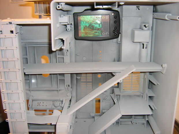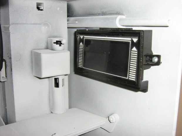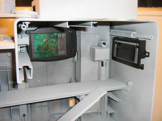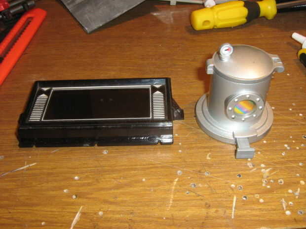 Decorar las habitaciones de los Barracones usando pantallas de gadgets desechados. Uso una mano DaVinci para el monitor principal y la pantalla de un videojuego antiguo. Un juguete de un Happy Meal (creo que es de "Flubber") podría ser un depósito de productos químicos.