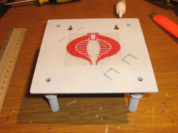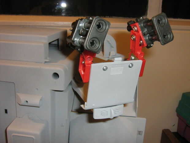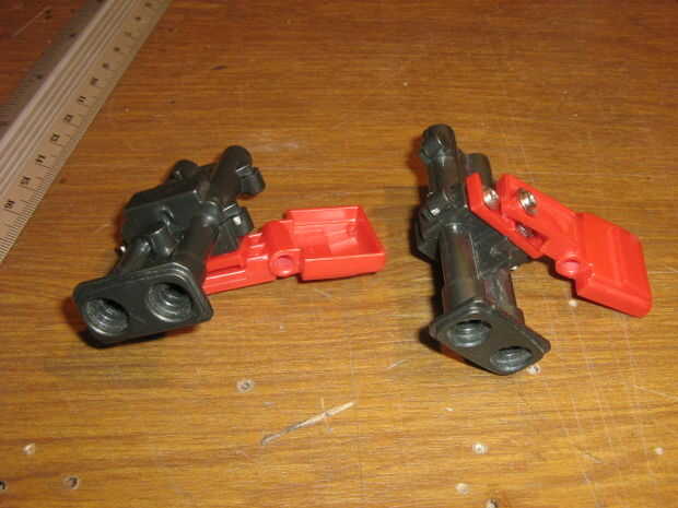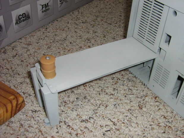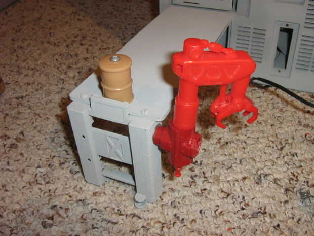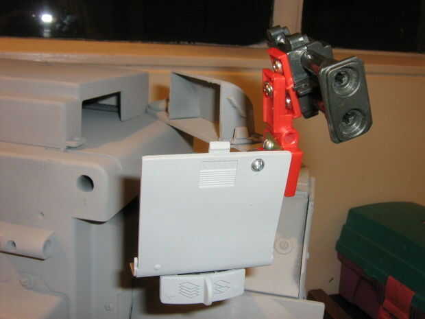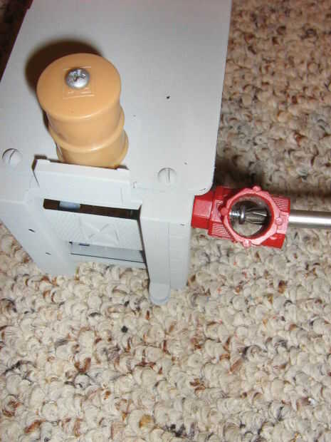 Colocar armas en la mirada y cada lugar que desees. Uso de tornillos, tornillos, ángulos de hierro y superglue (tenga cuidado, no dañar la pintura). Puse un carrete vacío en frente del muelle. En el lado, hice una pequeña grúa con una garra de plástico de un dispensador de caramelos.