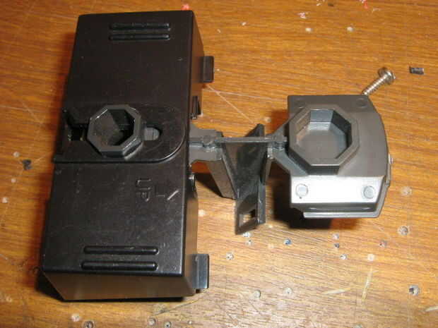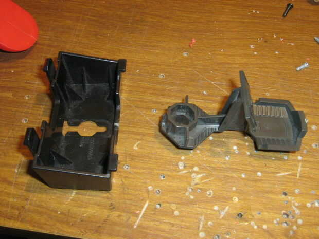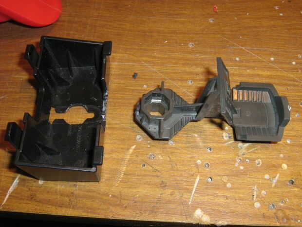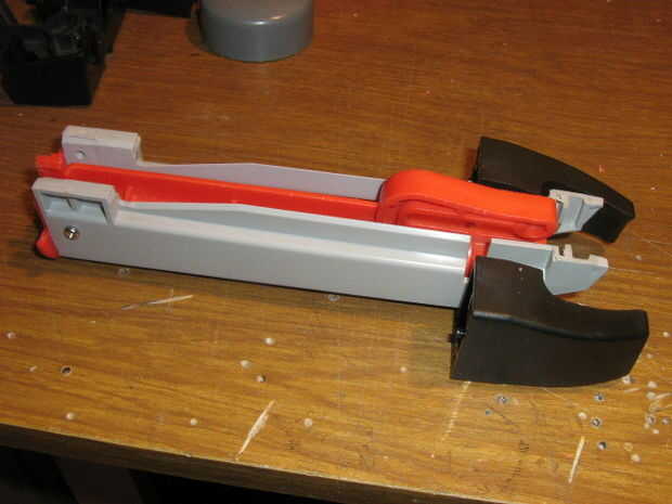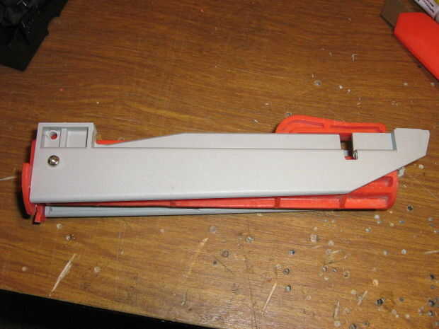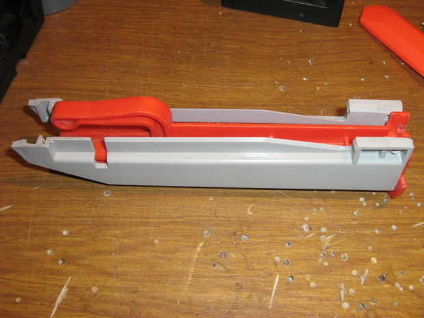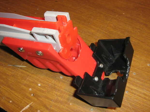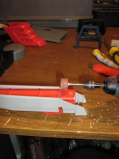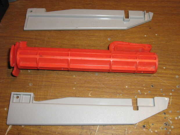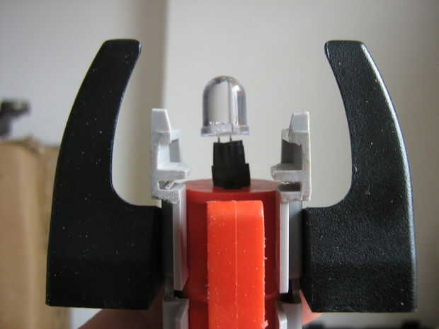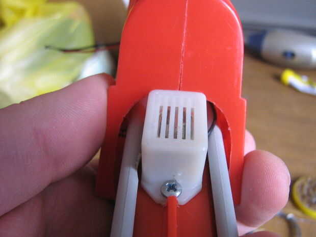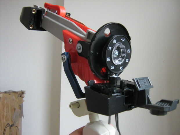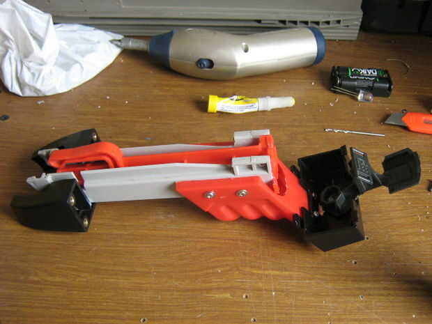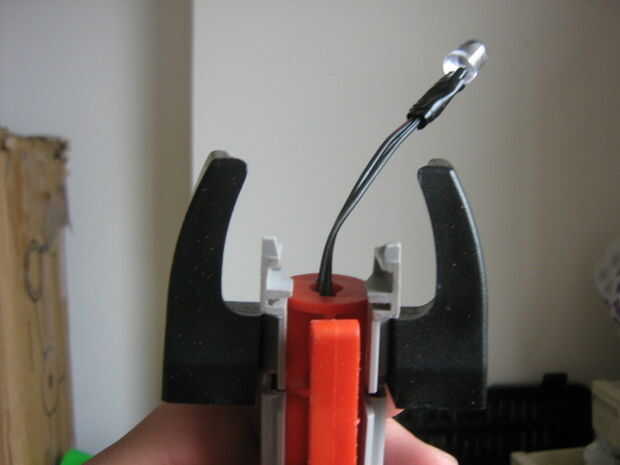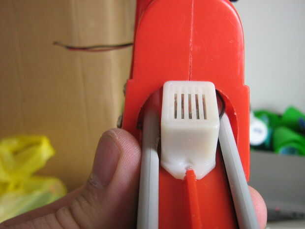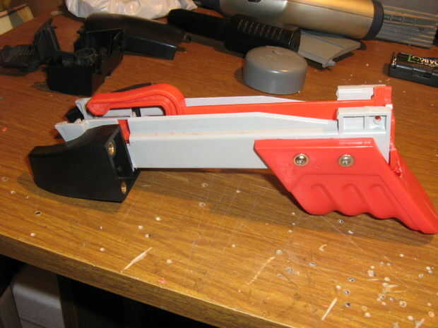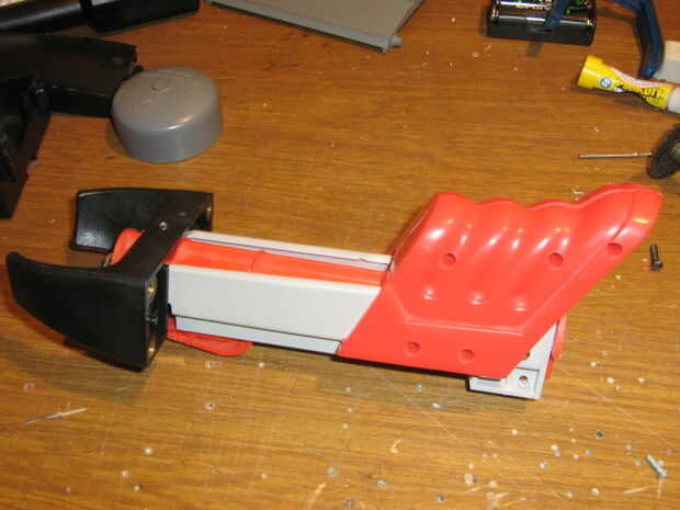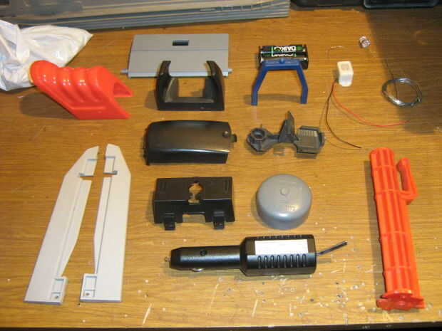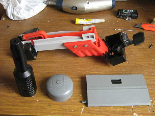 Mediante una pieza cilíndrica roja que he encontrado en la calle, algunas piezas de la impresora, un pedazo de una Super Soaker, Robotix pedazos y un montón de plástico de basura, hice el rayo de la aniquilación. El LED y el zumbador hará las funciones de "Luz y sonido" amamos en los juguetes de acción.