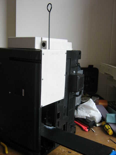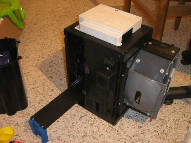 El techo tendrá un piso adicional para el rayo de la aniquilación. Utilice una caja de la impresora. Ocultará los tornillos que afianzan el rayo a la base, los cables y la caja de baterías del rayo.