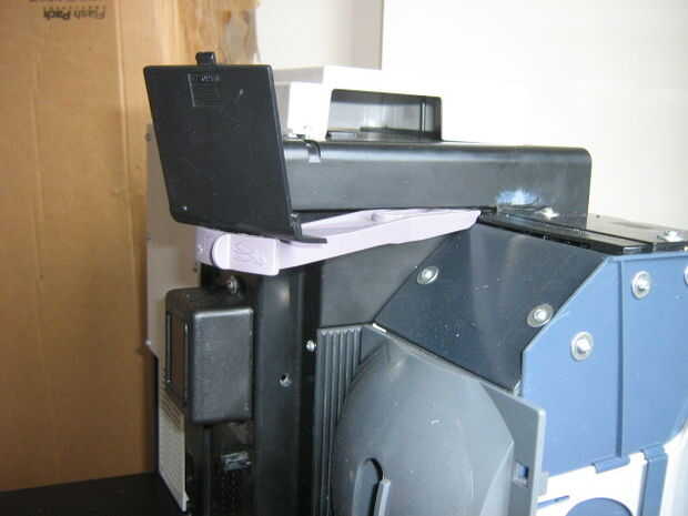 La base va a necesitar y elevado punto de vigilancia. Usar un pedazo largo de una impresora y la tapa del compartimento de las pilas de un dispositivo eléctrico. La cubierta debe fijarse a uno de los extremos de la pieza larga (tornillos). El otro extremo puede ser insertado en la ranura superior de la base y fija con pegamento o tornillos.