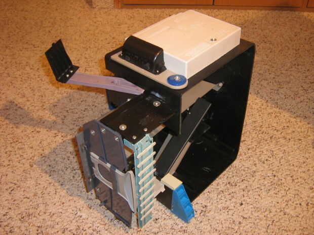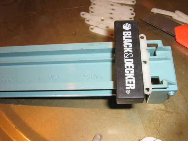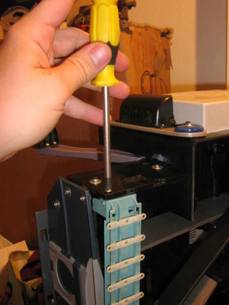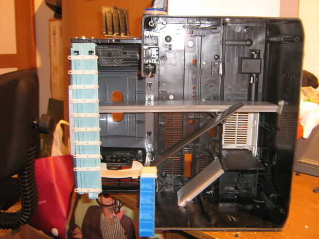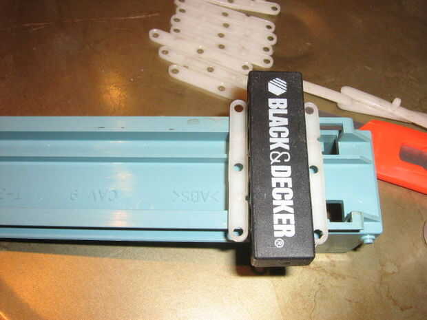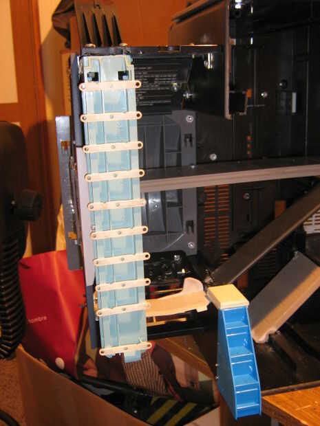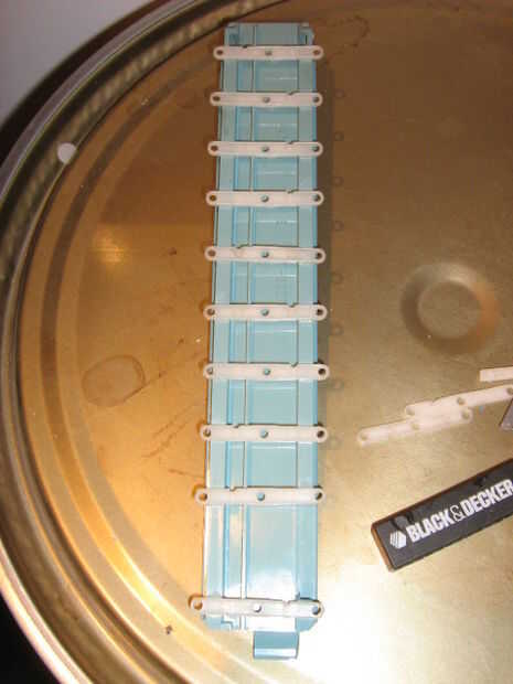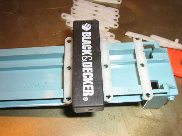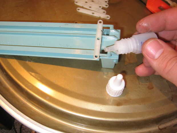Pegue la primera barra en el extremo del pedazo largo de la impresora. Si desea el mismo espacio entre las barras transversales, utilice alguna pieza rectangular como referencia. Poner aparte cada travesaño cuando pegue.