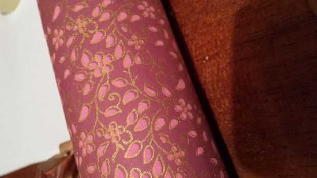 Papel - esto es grueso, papel de arte de buena calidad con un patrón en él. Me puso espalda £3ish para un rollo de Hobbycraft.