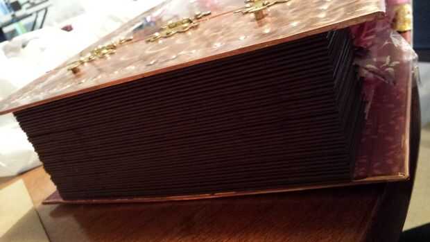Voila! Su libro es completa. Al mismo tiempo también hice un pequeño álbum de fotos para que coincida con. Tengo algunas decoraciones para agregar a ella, pero he no recogí los de la tienda todavía. (Piezas de esquina de latón utilizados normalmente en marcos de la foto)