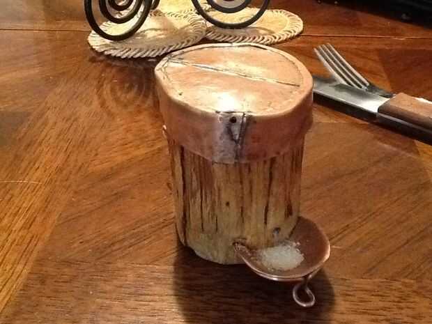 En lugar de una cuchara que puede perderse (y sales) coloqué un lavabo pequeño para sostener una pizca (parte amistoso) de sal.