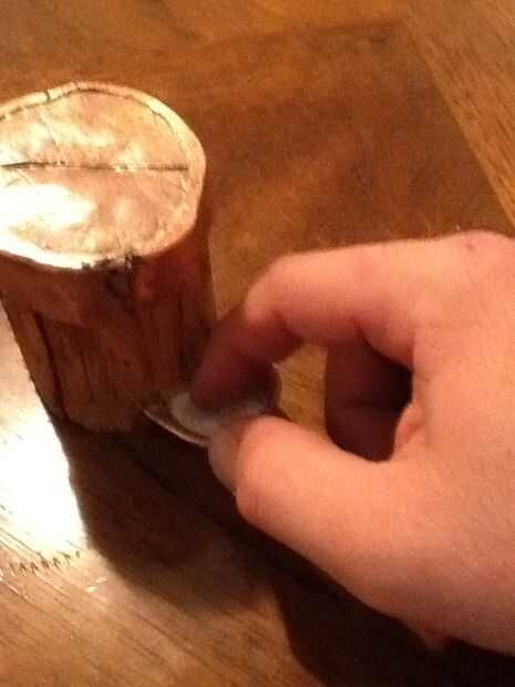 4 Utilice el agujero para insertar la hoja de Sierra de marquetería y vio hasta recortar el interior del cuerpo dejando un tubo de madera. Utilice una escofina de madera y papel de lija para obtener su forma final.
