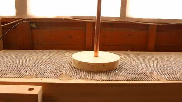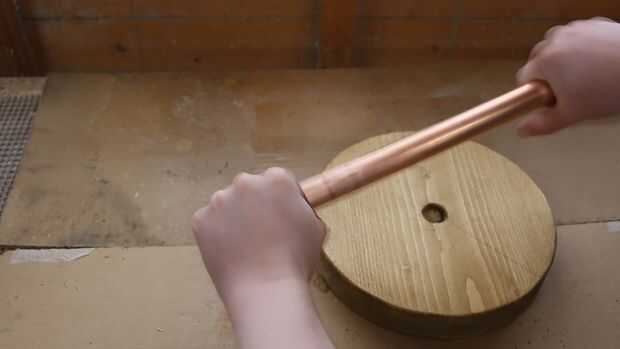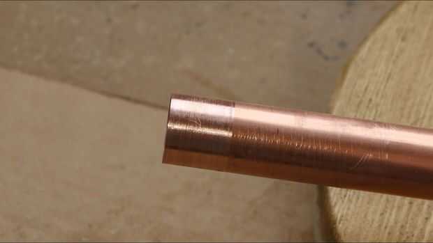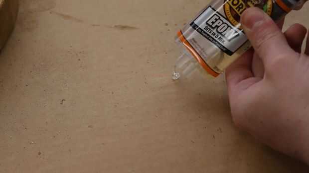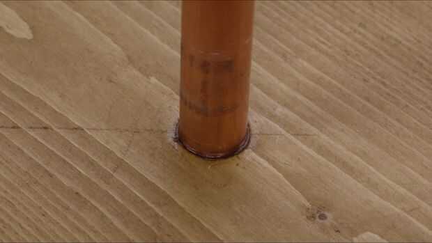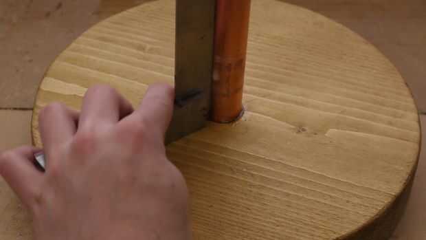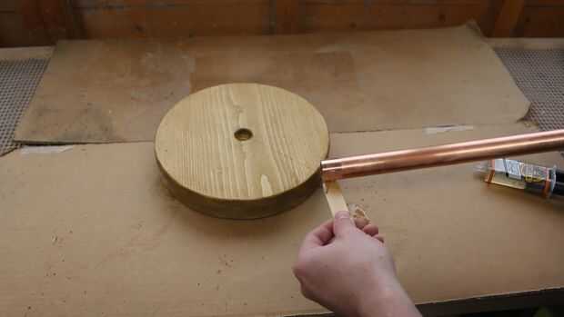 Cuando la cera estaba completamente seca. Lija en un extremo de la tubería de cobre de 620mm, esto es darle el epoxi más superficie a adherir a. Luego se mezclan cantidades iguales del epoxy y añadido el agujero y el extremo de la tubería de cobre que arena. Entonces pude Inserte el tubo de cobre en el agujero asegurándose de que estaba totalmente asentado y cuadrado a la base. Dejó ese conjunto completamente sobre caballero.