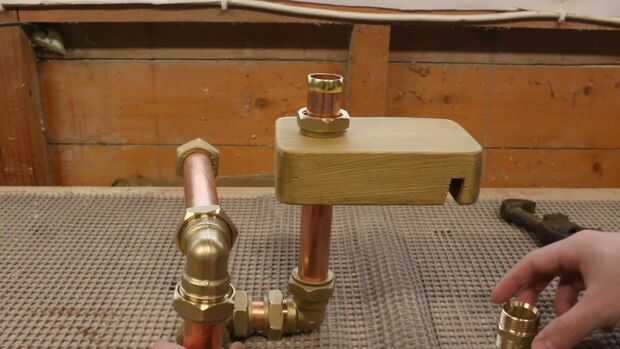 He utilizado un bloque de la misma Junta de andamio que hice el punto de partida. Taladré un agujero de 22mm a través del bloque.