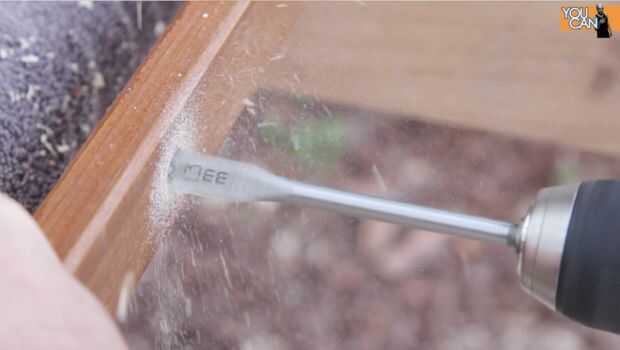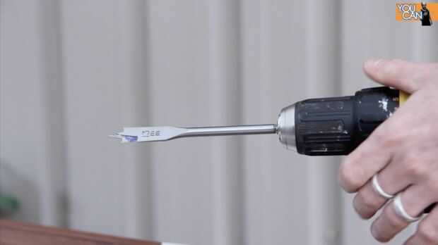 Para perforar un agujero que puede cualquiera usar un poco de punto de brad pero compré un poco de las cosas en su lugar que era más barato. Esto significaba que tenía que perfore un orificio piloto primero y luego seguir con la punta de la pala.