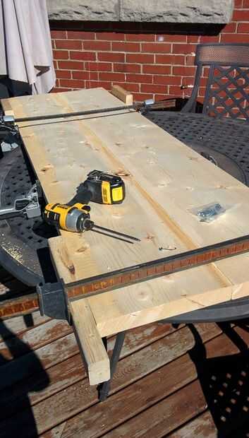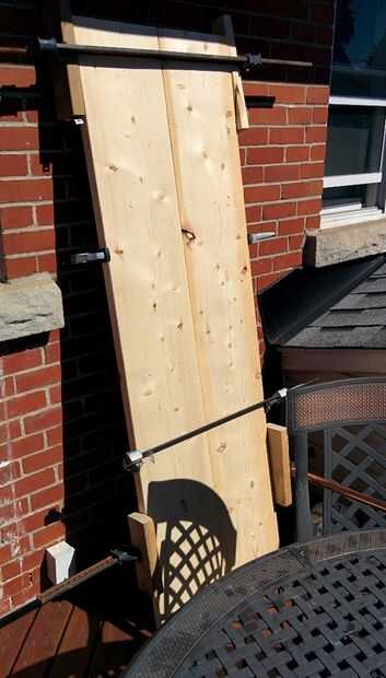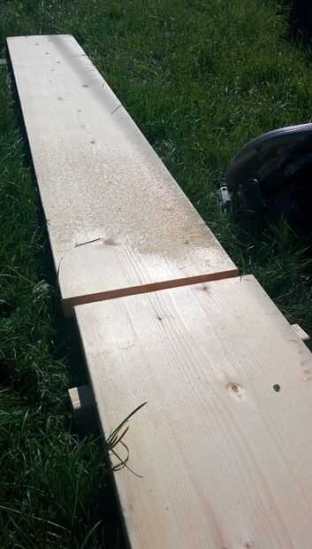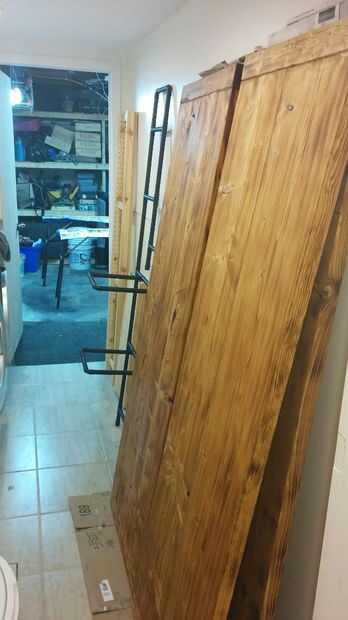 Quería mantener las curvas en las esquinas de la madera, así que ajusté mi ancho de estante a lo que ya estaba comercialmente disponible. Mis estanterías estrechas terminaron por hacerse de 12'x 8" x 2" de madera, aunque en la vida real la madera es realmente 7,25" ancho y 1.5" de espesor. Los grandes estantes se hacen de 12'x 12" x 2"madera, pero otra vez la anchura real es 11,25" y el grueso es 1.5". En ambos casos, la madera fue cortada por la mitad para hacer dos estantes aproximadamente 6' de largo. Entonces utilicé madera 2 "x 3" para las tablas del pan en los extremos.